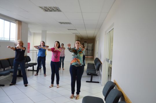 A prática de exercícios físicos no ambiente de trabalho, durante o horário de expediente, é uma das formas de promover a saúde dos servidores e de minimizar os riscos de lesões de esforços repetitivos e doenças ocupacionais. Pensando nisso, a Prefeitura Municipal de Chopinzinho tem levado a todas as secretarias municipais a ginástica laboral. Esta semana os professores os professores de educação física da Secretaria de Esportes retomaram os trabalhos da ginástica laboral com os funcionários.